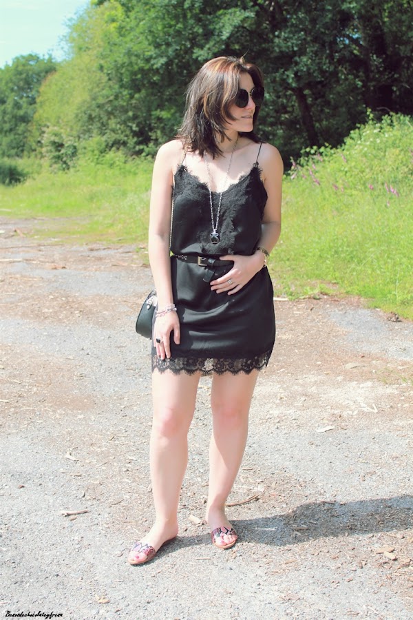 Hoy os traigo un nuevo look sexy a la vez que elegante, donde el protagonista es el vestido de tendencia lencera en color negro de tirante de spaguetti que se le puede dar múltiples opciones, ya sea con camiseta o blusa por debajo o sólo como decidí llevarlo en esta ocasión debido a las altas temperaturas que tuvimos el fin de semana.