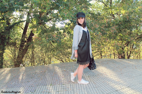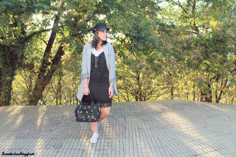 Aprovechando las buenas temperaturas, seguimos luciendo pierna, pero recurriendo a la chaqueta, pues hacia la noche cuando se pone el sol, empiezan a bajar y bien las temperaturas. Para esta ocasión llevo vestido lencero en negro con camiseta blanca por dentro a modo de superposiciones. En otra ocasión me lo pudisteis ver sin ella, luciendo solo el vestido (ver post AQUÍ)