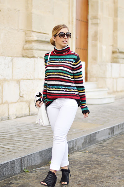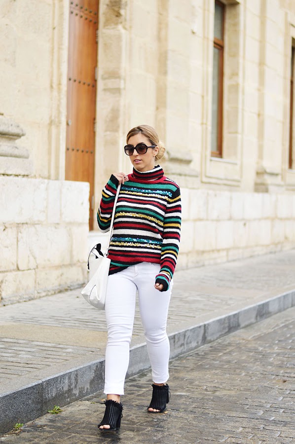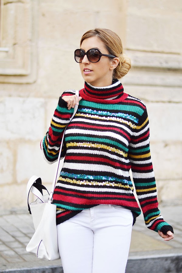 Pensando ya en la próxima temporada, estoy buscando por webs prendas de invierno con algo especial. Por eso os quería enseñar este precioso jersey de rayas y lentejuelas de Zaful. Se me ocurren un montón de looks con este jersey, que ya os iré dejando por el blog. Pero de momento os enseño este, muy sencillo, con pantalón y bolso blanco. Un look que por su sencillez puede servir para ir a la ofici ...