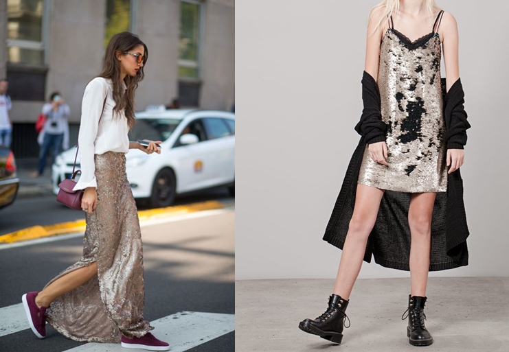 Sin duda la prenda ganadora es el slip dress en su versión brillante. Eso sí unos trucos para saber cómo combinar esta tendencia son necesarios, pues si llevamos un vestido brillante, el resto de complementos deben ser discretos, para no arruinar el look, y en el caso de dos piezas apostar por una parte con brillos y otra neutra para evitar la sobrecarga.
