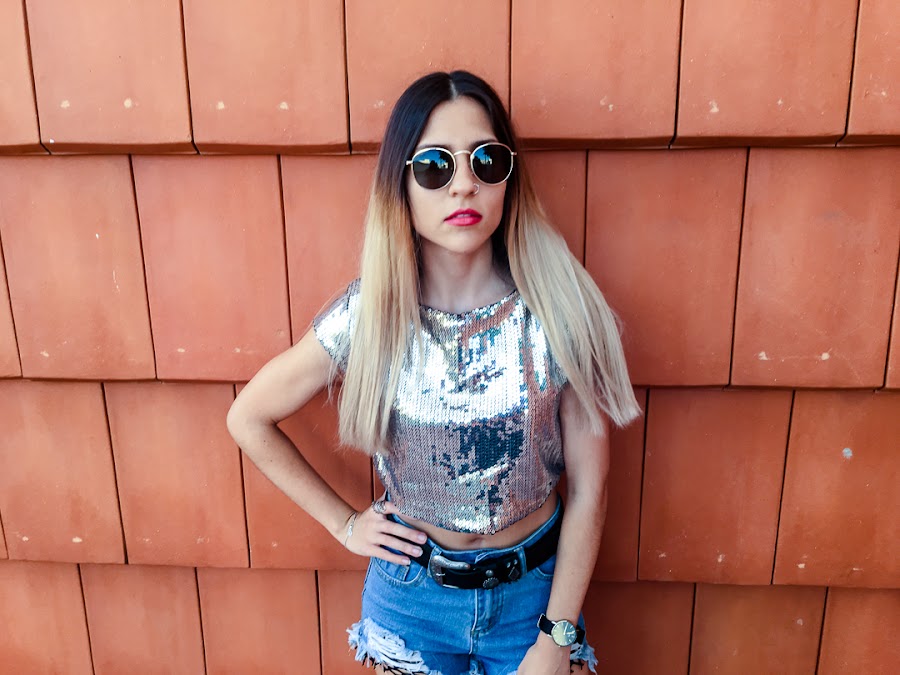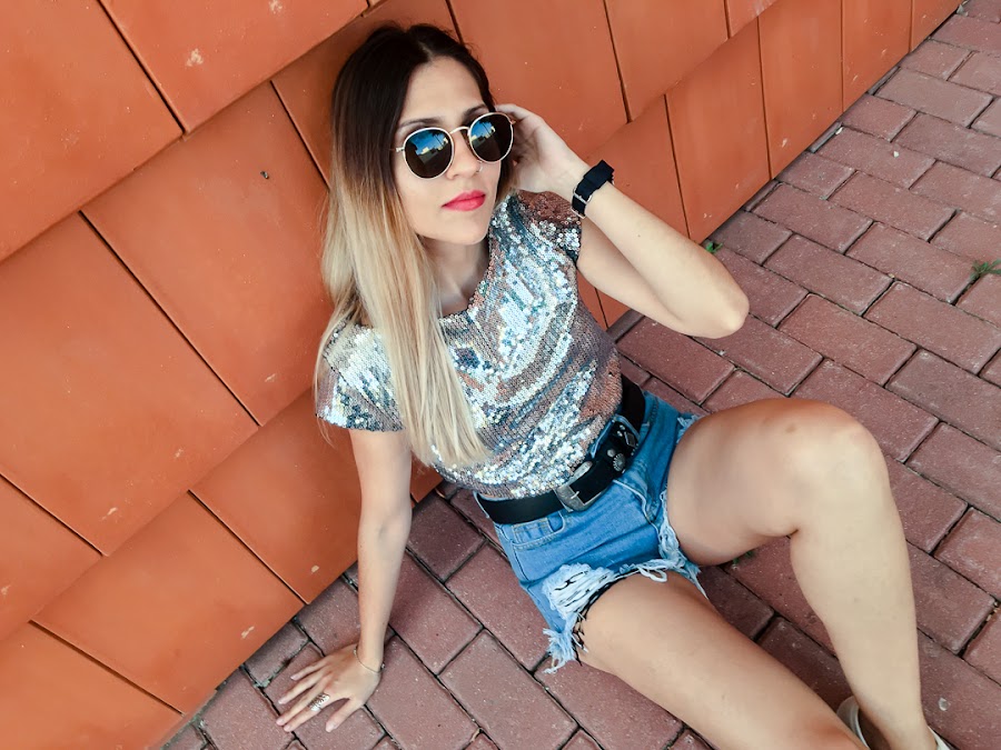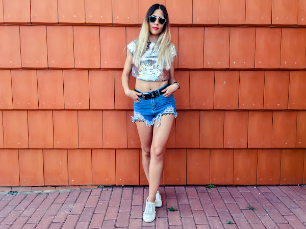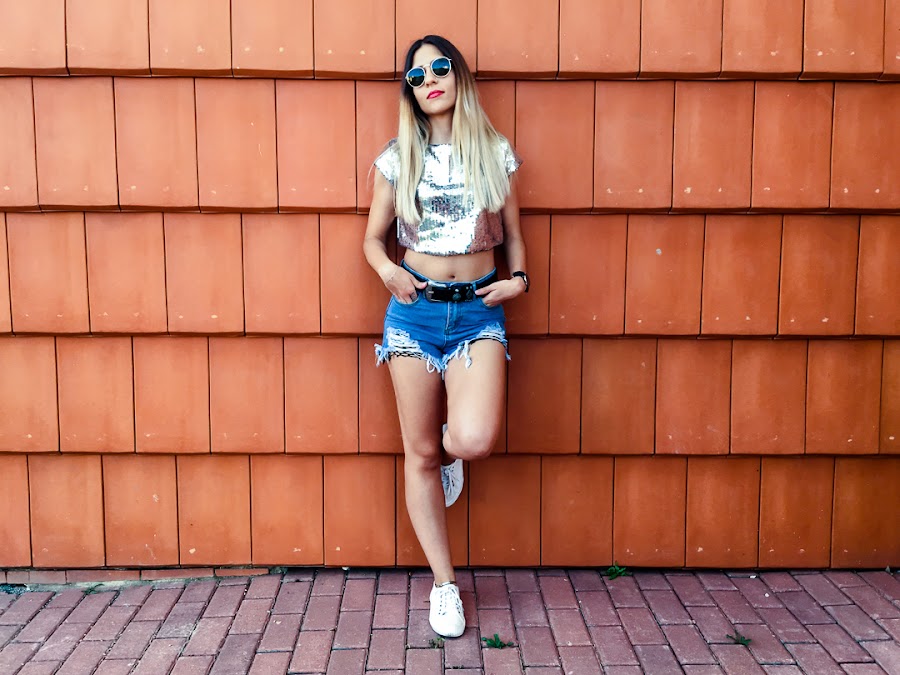Hoy os traigo un casual look, iba a decir sencillo, pero con tanto brilli brilli y tanta lentejuela no sé yo se llamarlo sencillo... jaja! Así es mi crop top de hoy, de manga corta y repleto de lentejuelas plateadas!