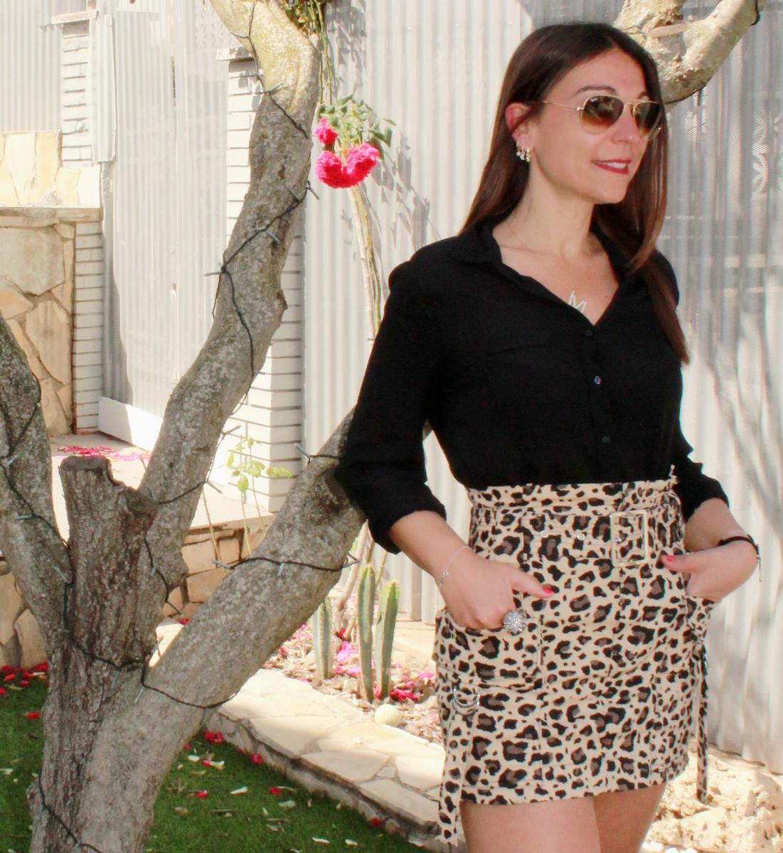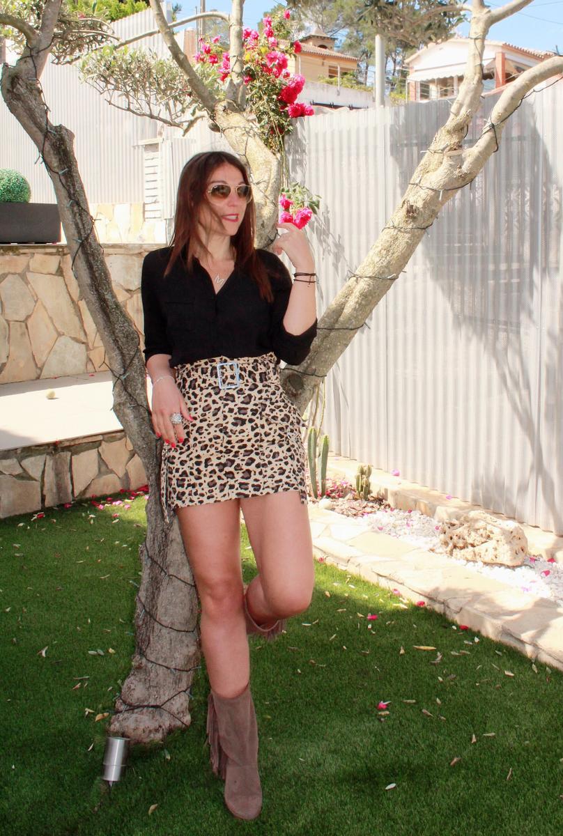 La falda con estampado animal, cintura de paper bag y grandes bolsillos al más puro estilo cargo, una mezcla sin duda interesante….jajaja