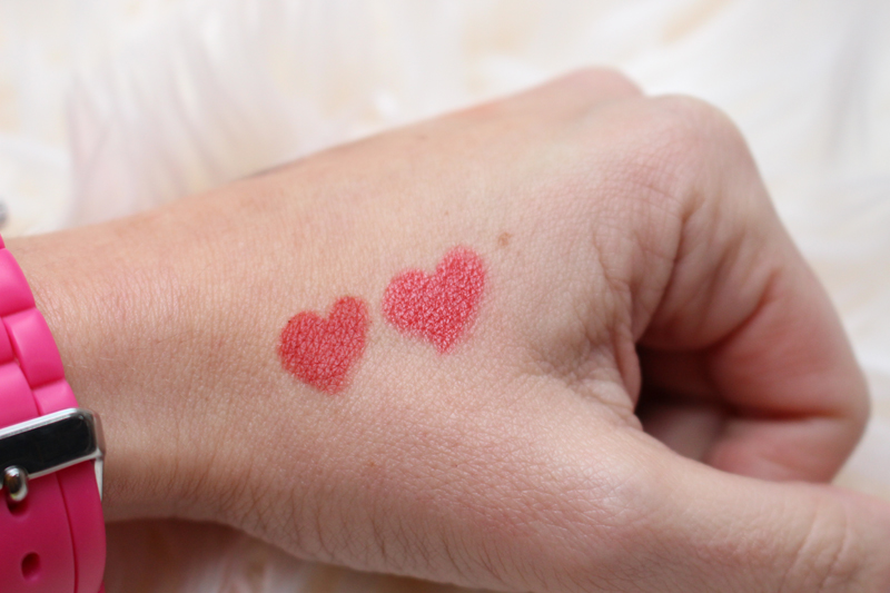 Pasamos a los labiales, lo que más me suele gustar de todo el maquillaje y en este caso son dos tonos parecidos, no iguales, uno es un poco más oscuro que el otro pero los dos son tono rojo teja, tirando a marrón, lo que más se les diferencia es que uno tiene acabado satinado y el otro es mate con acabado aterciopelado. Los dos son una auténtica pasada, de pigmentación, de acabado, de comodidad a la hora de llevarlos, de duración, pero el mate me ha conquistado totalmente.