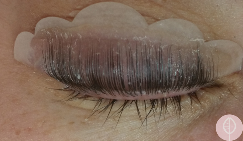 Así quedan las pestañas adheridas a la silicona para dar la forma