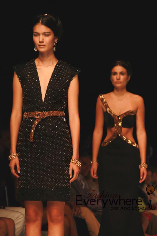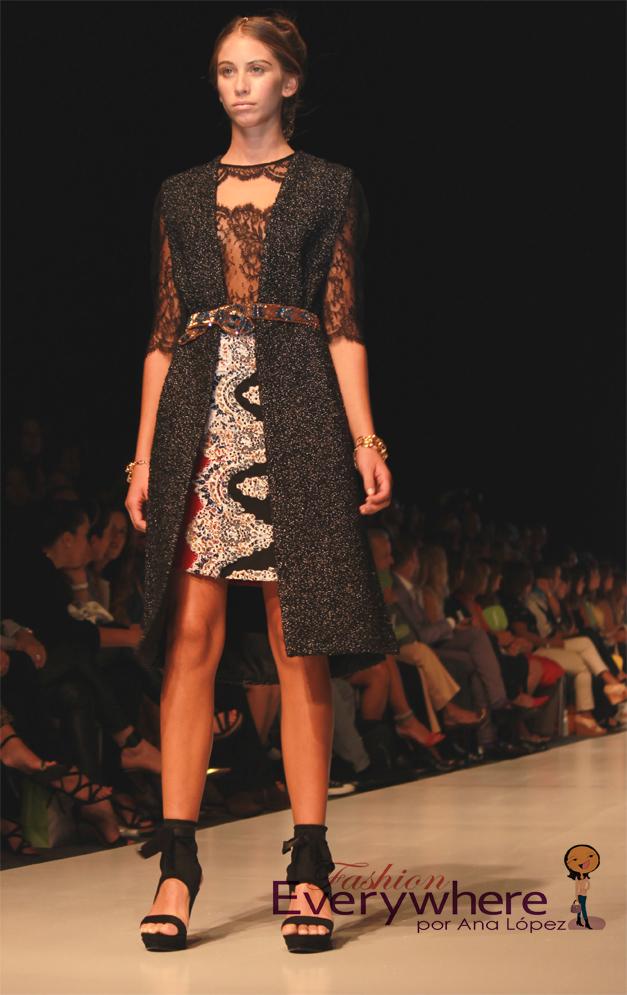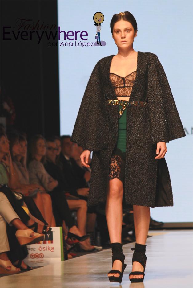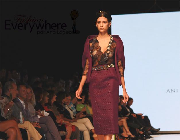 ANI ALVAREZ CALDERON: Ani me dejó satisfecha al 60%, algunos de los diseños me parecieron más elaborados que otros, y algunos muy repetitivos, sin embargo fue interesante el concepto de sobreponer prendas unas encima de otras, con un estilo ligeramente virreinal, me hizo recordar a la reina Elizabeth de Inglaterra. Lo que más me gustó fueron las aplicaciones y cinturones en pedrería y el provecho que le sacó a las texturas de las telas que usó en la colección.