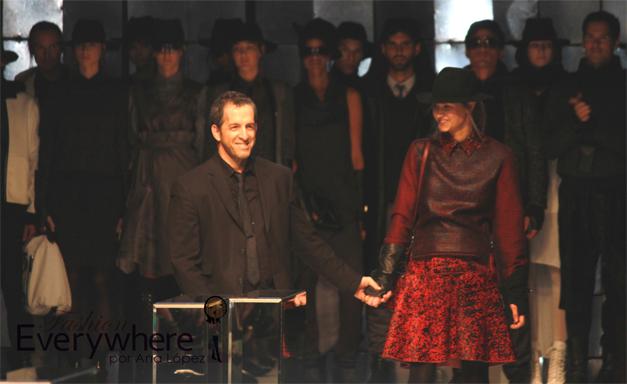 KENNETH COLE: Realmente una puesta en escena de lujo con películas proyectadas en la pasarela (usada como écran), estructuras elaboradas con espejos a modo de escalones, y música que realmente daba ganas de escuchar. Lo que más me gustó de la colección fue que la confección es perfecta, ni una sola arruga, todo cuadraba a la perfección. Y al final como si fuera una obra de teatro, se levantó la pantalla LED misma cortina de teatro y Kenneth junto a su hija y el resto de su equipo agradecieron al público. Cabe señalar que su linda hija también modeló en el desfile justo al final.