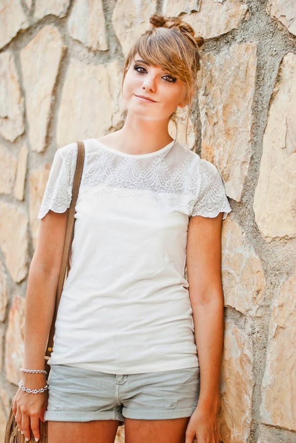 En cuanto al look, como podréis comprobar es de lo más sencillito pero con toques especiales como el encaje de la camiseta el cual la hace diferente a la típica camiseta blanca. Looks comodísimos que adoro para estos días de calor?las sandalias son geniales, con el tacón justo? en definitiva de las más cómodas que tengo!