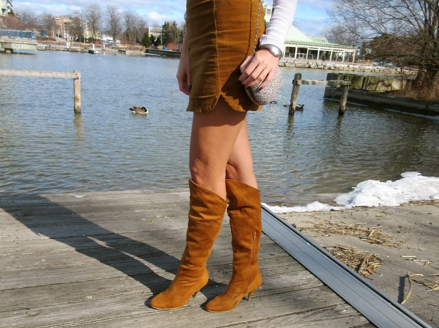 Siguiendo esta propuesta de estilo, yo escogí una mini falda de ante y unas botas también de este material tan en tendencia esta temporada, ambas en color caramelo, para crear el contraste de claro oscuro utilicé un top lila con brillos sutiles, dulce y femenino.