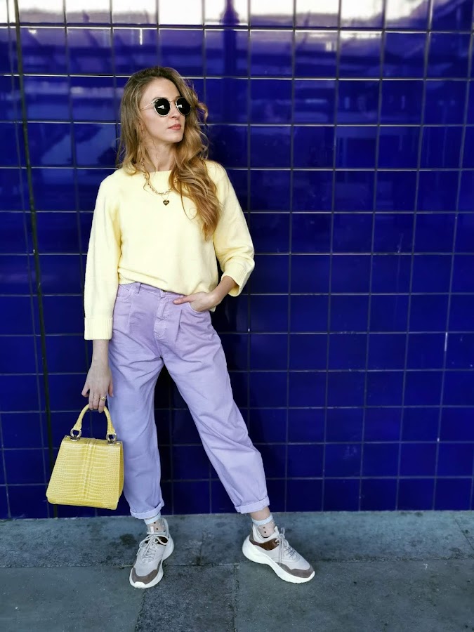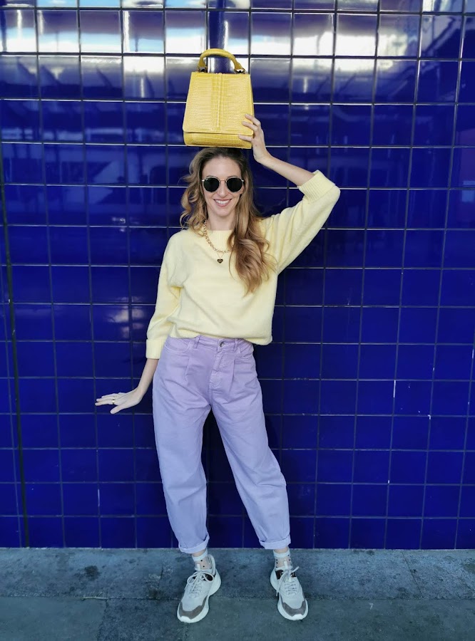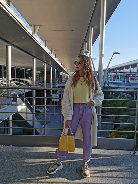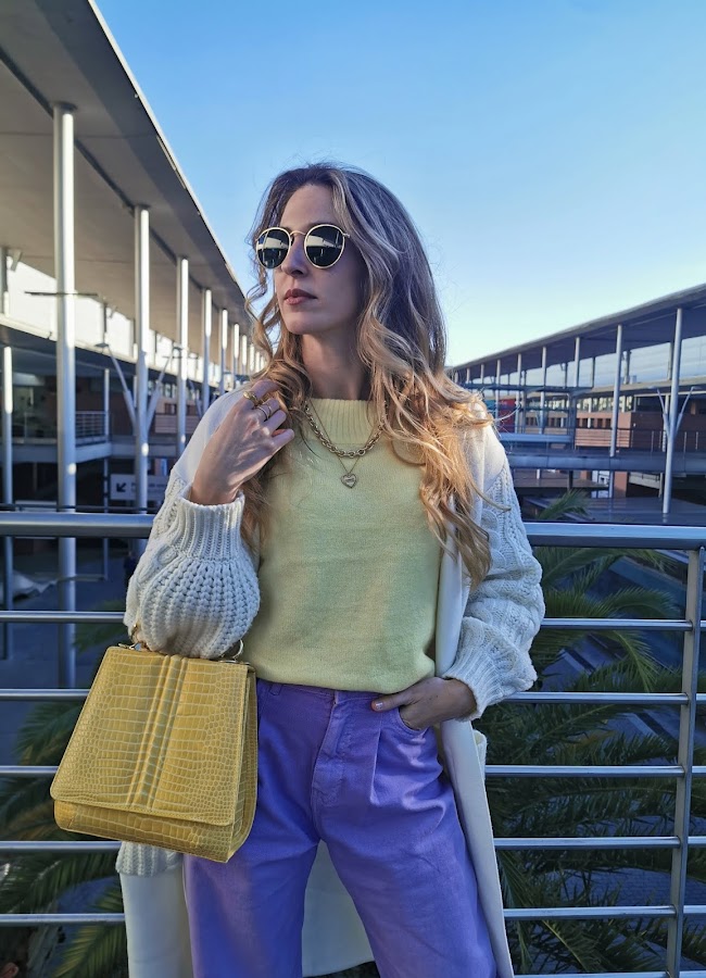 Si hay un color que me tiene completamente enamorada esta temporada es el lila y más aún combinarlo con amarillo y por fin dejar los looks en blanco y negro que parece que te incitan a llevar el frío y el mal tiempo.