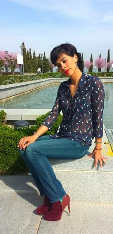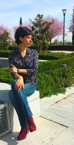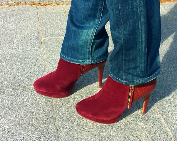 Los botines color vino ya os los presente en el Look Tacones Vino Tinto, a muchas os encantaron y me ha parecido buena idea combinarlos con este outfit un poco más informal.