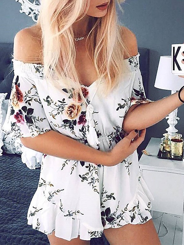Off The Shoulder Chiffon Floral Romper