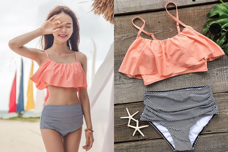 7BIKINI TALLE ALTO: Ese tono "coral" me parece muy lindo y la panty talle alto es ideal para mi en especial para después de almorzar en la playa.