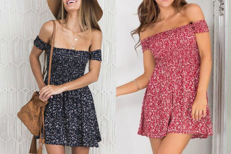 5VESTIDO FLORAL: Precioso en negro u la combinacion con bolso marron queda ideal, ademas seguimos con la tendencia de hombros descubiertos.