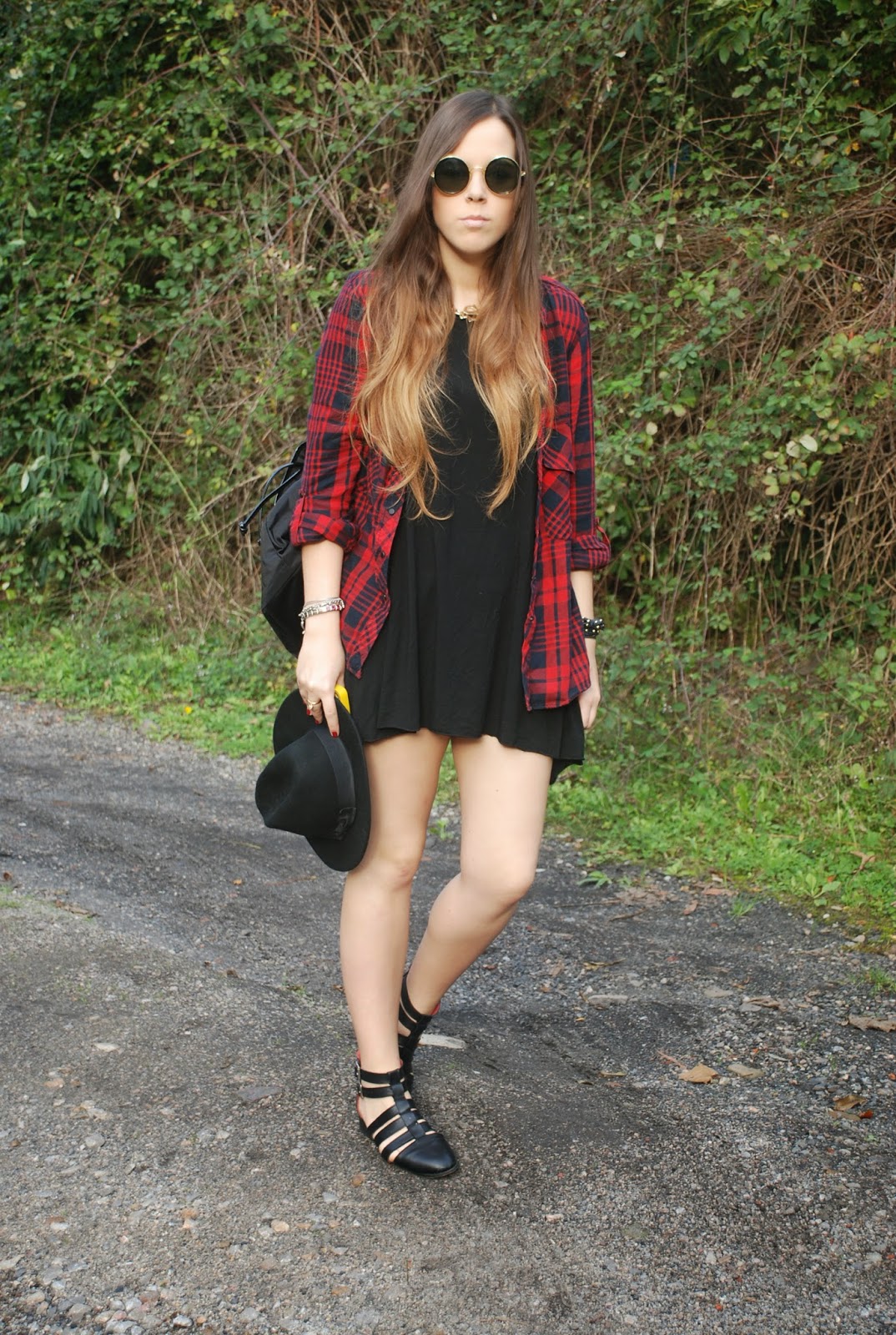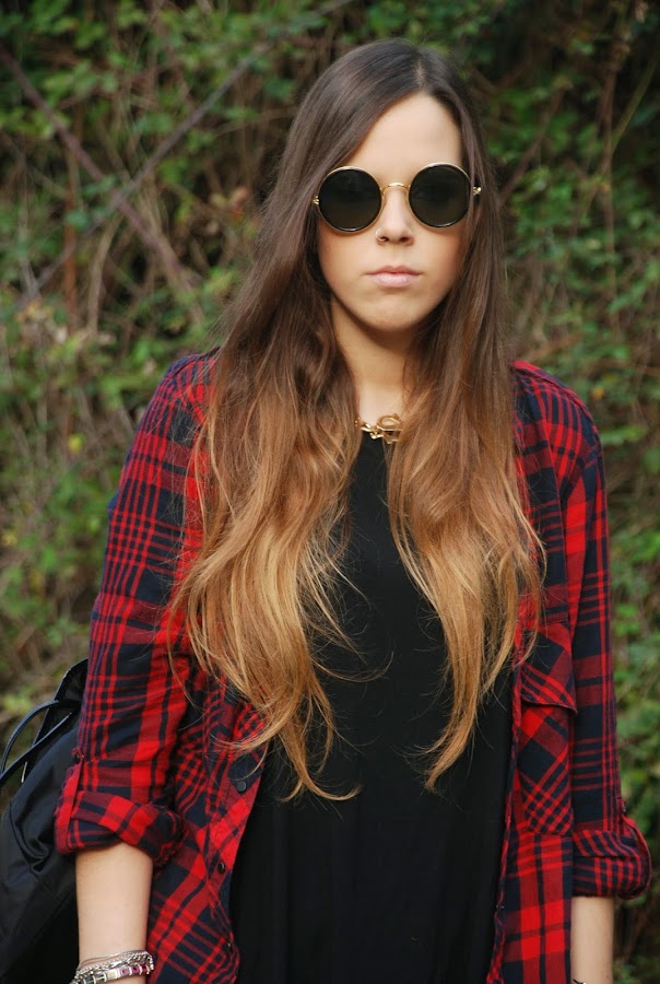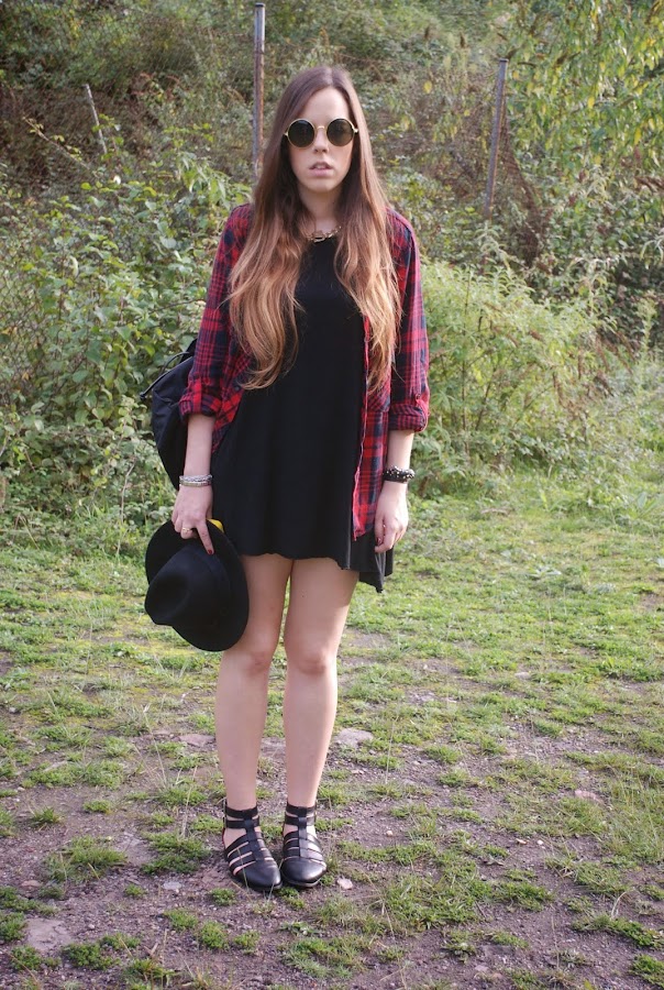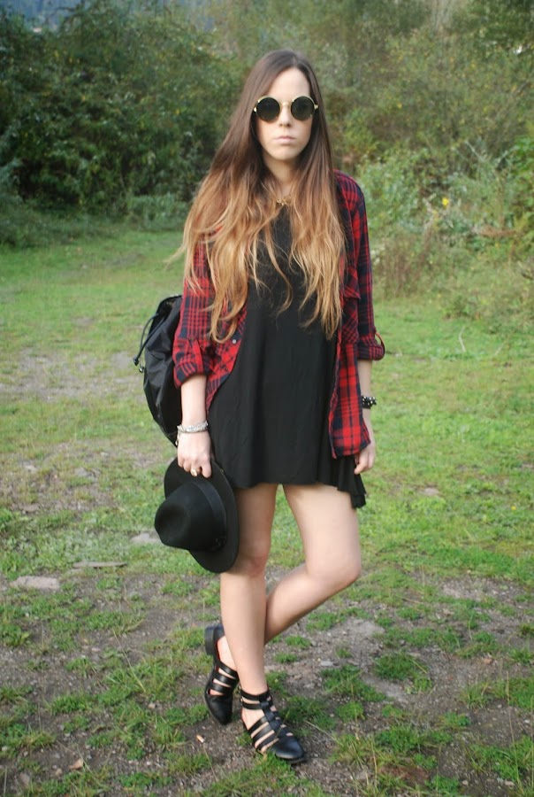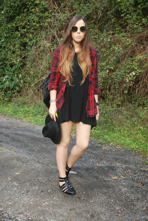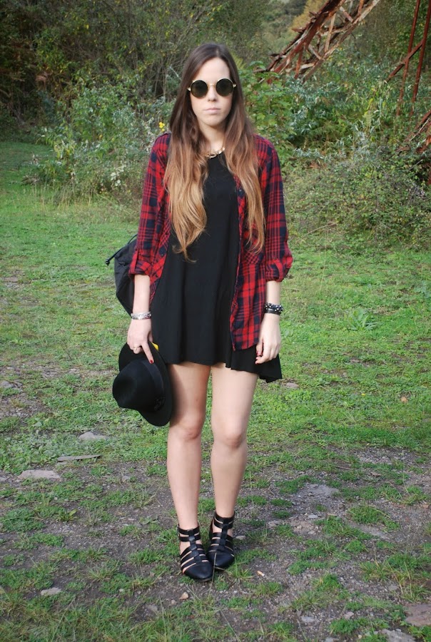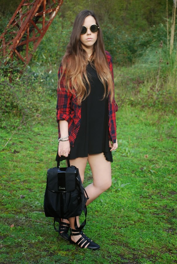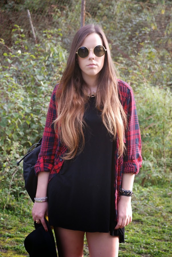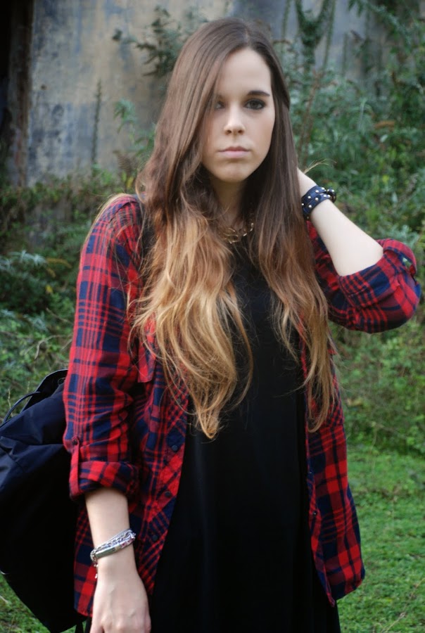En el post del miércoles pasado (podéis verlo AQUÍ) os enseñaba un outfit con un vestido/camiseta gris y os decía que lo tenía en otros dos colores. Pues hoy os enseño el negro combinado con mi camisa tartán (que ya me moría de ganas de volver a usar) para darle algo de color.