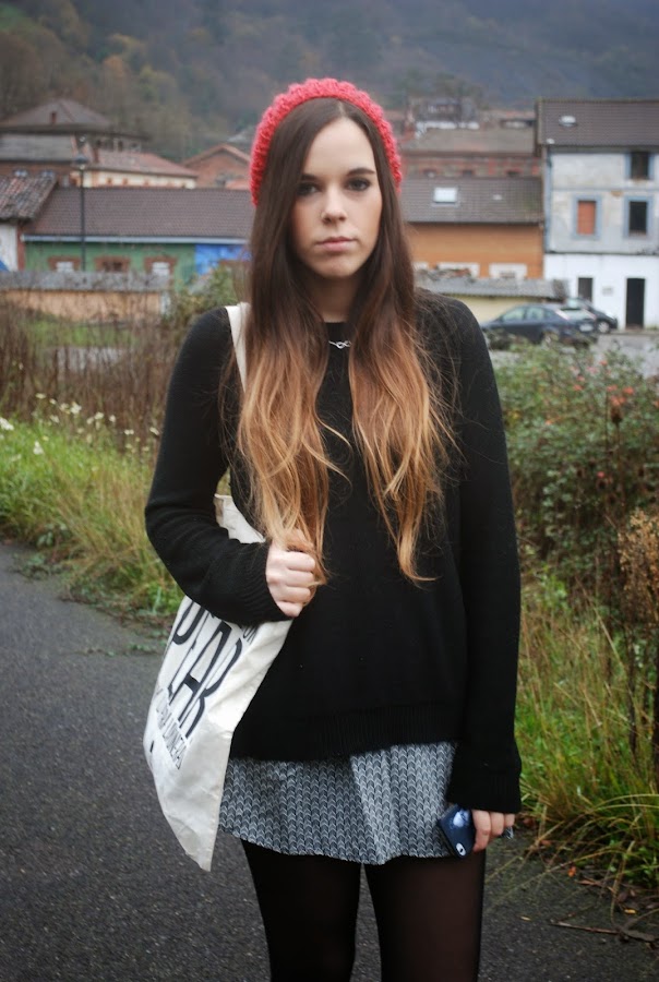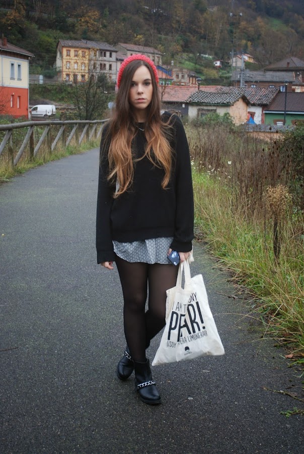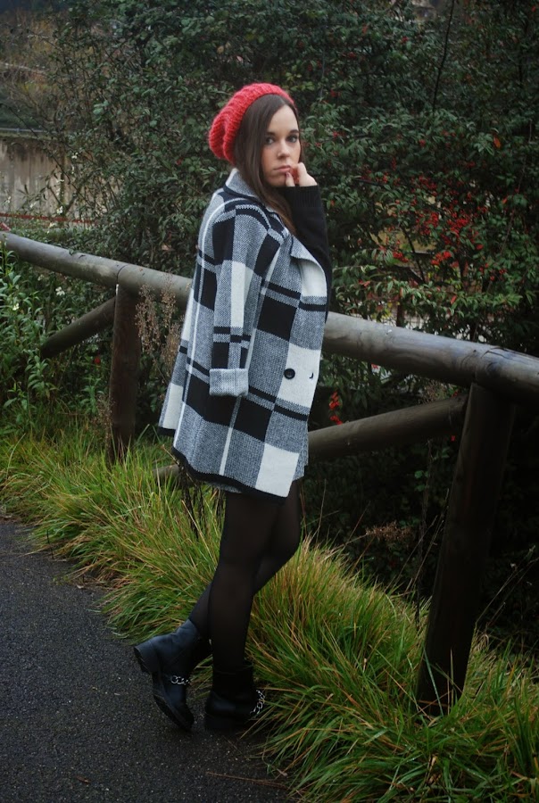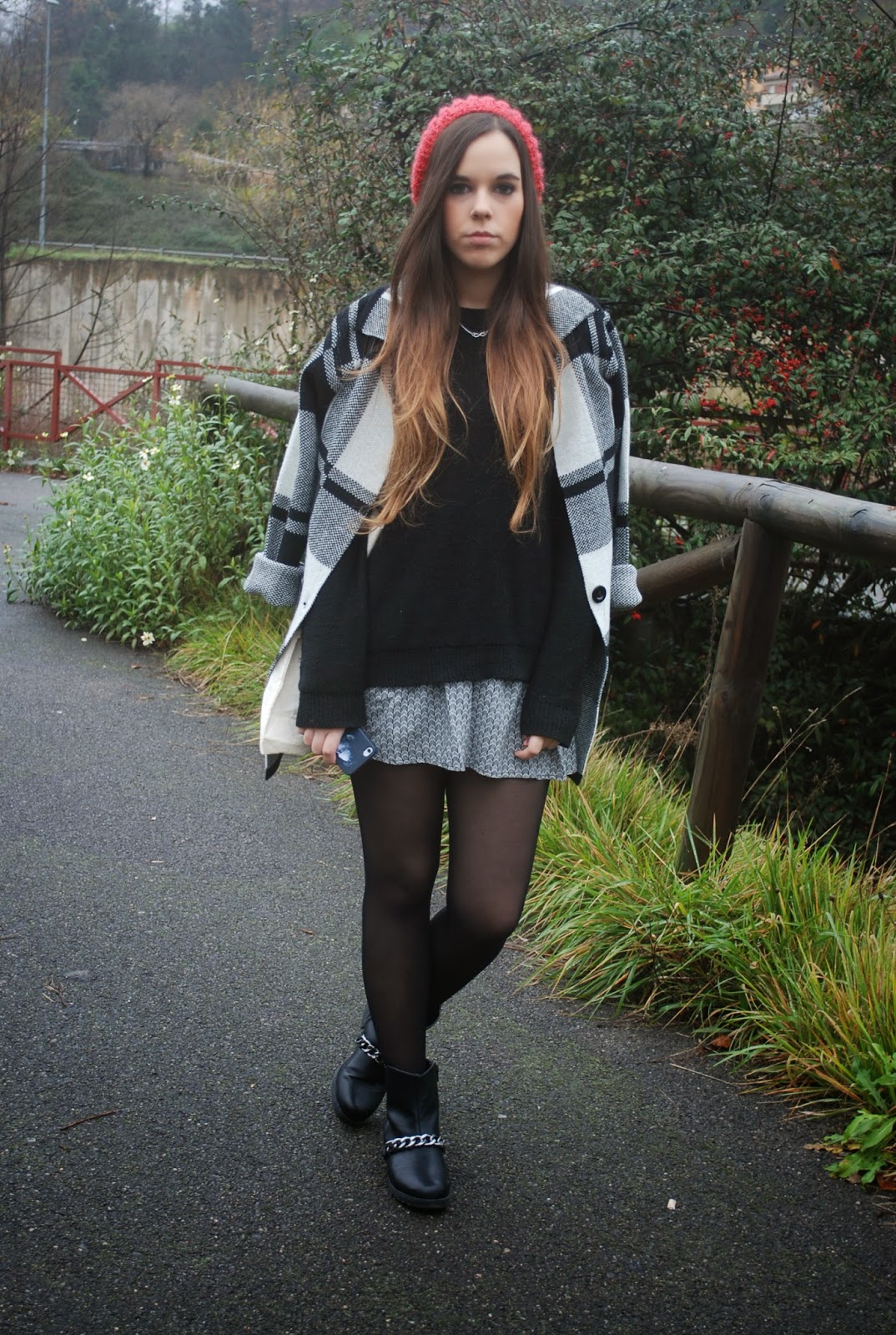 El vestido ya lo conocéis (lo vistéis aquí), pero con el jersey encima cambia totalmente y me gusta mucho el resultado. Para acompañarlo, mis nuevos botines (super cómodos) y mi nuevo abrigo de cuadros. Como complementos sombrero rojo para dar un poco de color, bolsa de super británico y collar con infinito de Fall in Style (una preciosidad que voy a usar muchísimo). También destacar mi nueva funda para el móvil. Se que a muchas os parecerá friky, pero a mi me encanta.