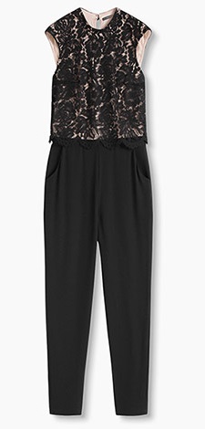 Al ver esta prenda he pensado que era un conjunto, pero no, resulta ser un mono y es ideal!! Porque a un mono básico y sencillo, le han insertado el encaje que está muy en tendencia ahora y para salir de noche creo que viene genial con una americana o una blazer y unos buenos tacones.