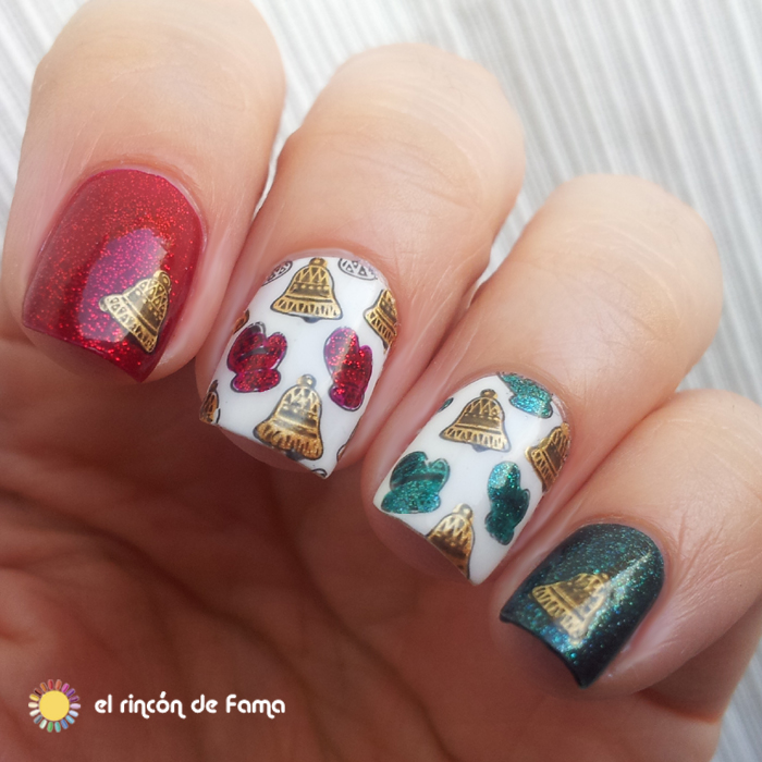 ? Manicura usando la técnica reverse stamping y unos motivos navideños de una placa de buyincoins