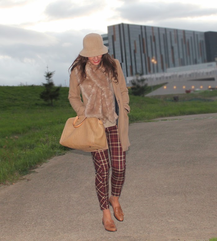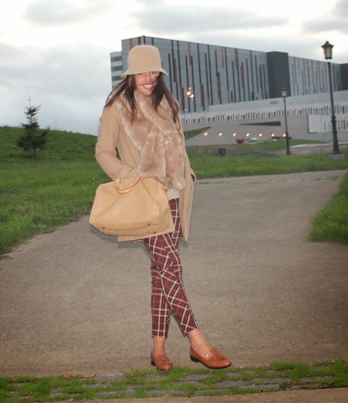 Hoy le di un poco de tregua al color negro y he vuelto a mis orígenes: beige con beige, ¡pero! en esta ocasión con mis pantalones de cuadros. Fueron una de las compras que hice en Madrid y la verdad que solamente me los he puesto en un par de ocasiones, me encantan por sus colores y porque tampoco están muy vistos. Mencionar también, que al final me anime a poner el andy como bandolera, un gran acierto ya que es mucho más cómodo y poco a poco me gusta el efecto. Y vosotras ¿qué opináis?
