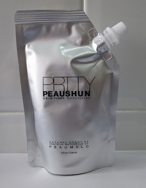 Se conoce con el nombre de "Prtty Peaushun" (un nombre un poco difícil de pronunciar, ¿verdad? jejeje). Este original producto ha sido creado por la maquilladora Bethany Karlyn. Se trata de una loción corporal, que también se puede utilizar en el rostro y en el cabello, y que es 100% natural.