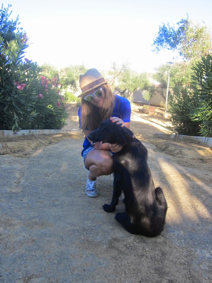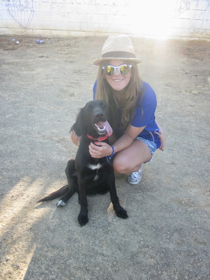 El viernes por la mañana cuando salía de casa para irme a trabajar encontré en mi puerta una preciosa perrita negra que con solo mirarla ya enamora. Nada más hablarle vino corriendo hacia mí para que le diese mimos, entré en casa y le saque agua y comida. Me subí al coche para poner rumbo al trabajo y venía detrás del coche la pobre casi hasta la salida de mi urbanización. Cuando volví del trabajo a las 3 de la tarde, ella seguía allí, en mi puerta. Volví a sacarle agua y de comer y me di cuenta del amor que desprendía. Confirmé que era una hembra y que debía ser tan solo una cachorrita.