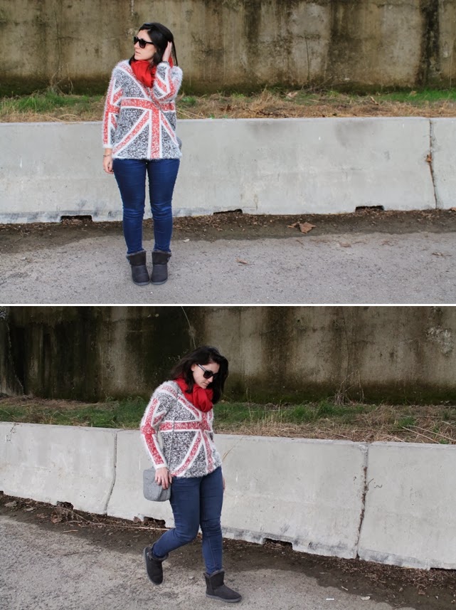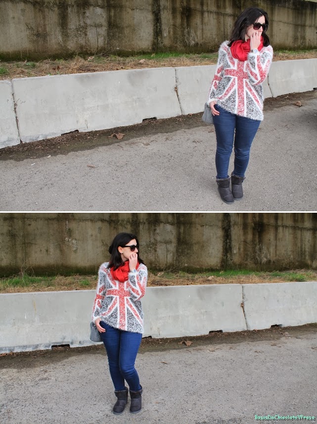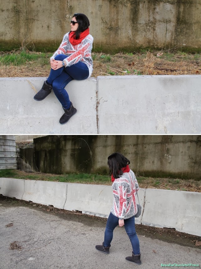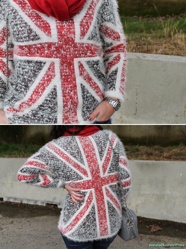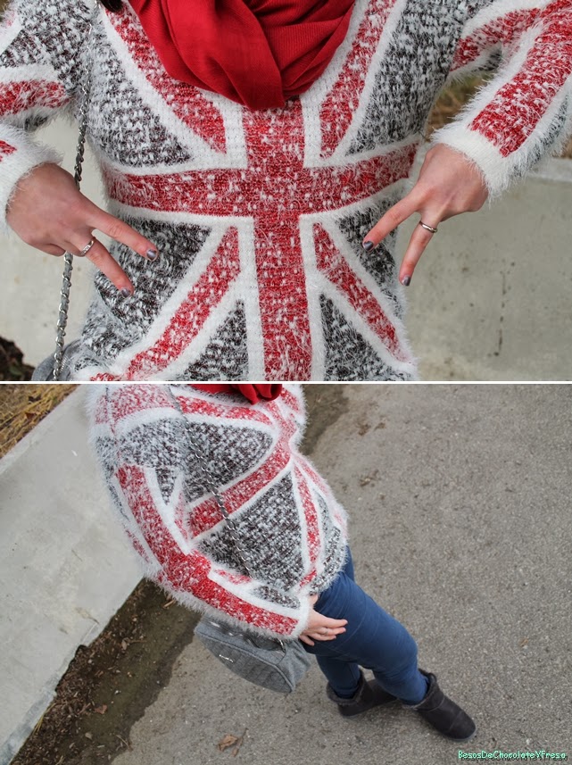 Hoy os enseño un look en el que el protagonista es mi nuevo sweater peludo con bandera de Inglaterra en tonos blancos, rojos y grises. Super calentito para estos días de frío y combinable, ya tenia ganas de unos así y justo va y me toca en el sorteo que hizo hace unas semanas la web Dressing Loar.