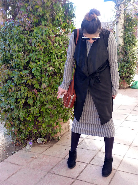 Tenía muchas ganas de un chaleco de éste tipo y la verdad es que lo estoy usando bastante, el vestido en principio no me lo iba a quedar y sería incapaz de ponérmelo solo, ya que marca bastante, pero una vez lo probé así combinado con el chaleco no me pude deshacer de él ;)