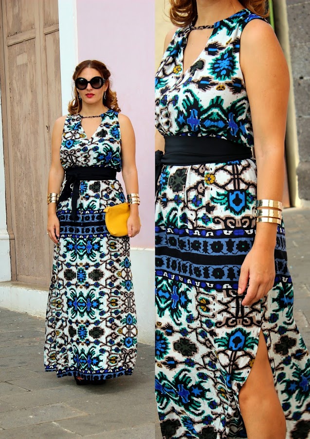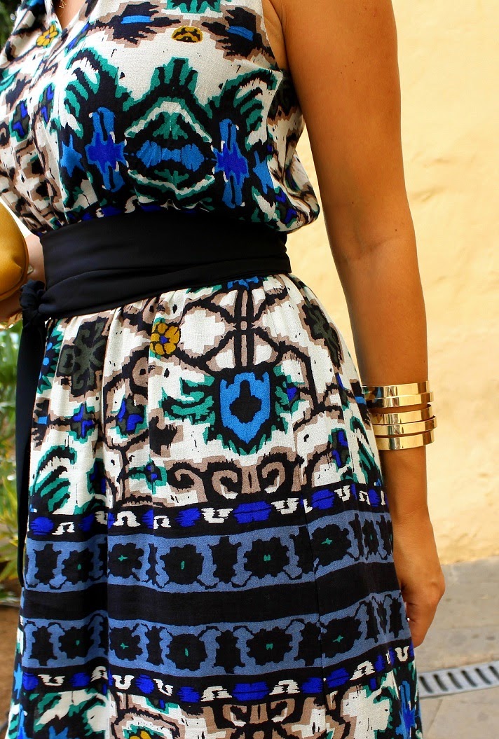 El vestido es de ZARA temporada S"14, brazaletes de MANGO temporada W"14, sandalias YVES SAINT LAURENT W"14 y clutch VALENTINO S"13.