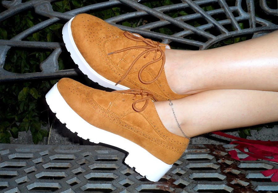 Para no quitarle protagonismo a la falda, la he combinado con una camiseta básica blanca. Los zapatos van a dar mucho que hablar en la nueva temporada. Son súper cómodos y me encanta como combinan con la suela blanca.