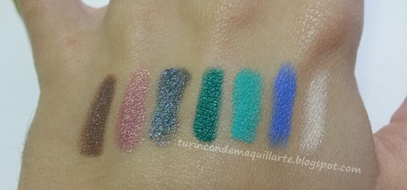 Como veis tengo 7 tonos, 3 de ellos son de la colección del verano pasado "COLOURS IN THE WORLD". Y deciros que me encantan. Se aplican de manera uniforme y se difuminan bastante bien. No descarto hacerme con alguno más, porque son muy duraderos y una vez se quedan fijos ¡ no hay quien los mueva ! y hay colores muy básicos para el día a día y colores resultones para looks de fiesta o looks más atrevidos.