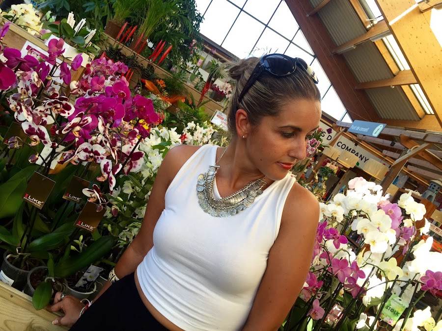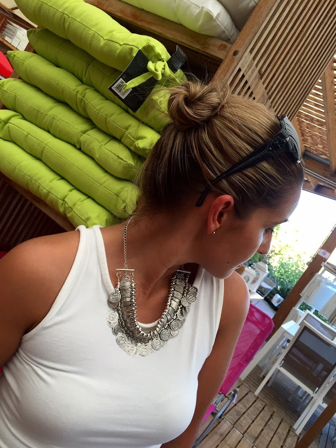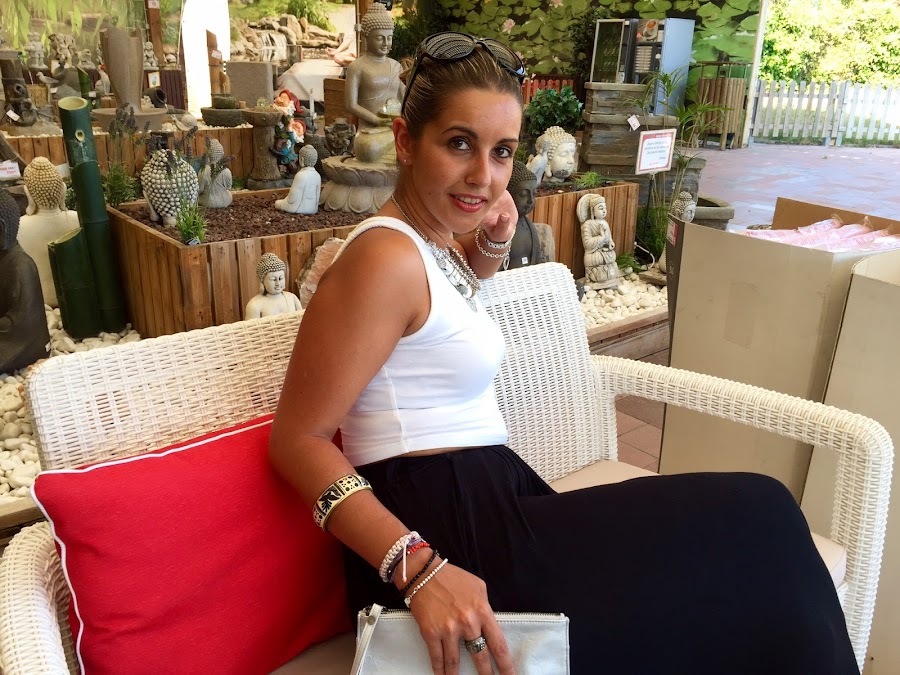 Good night sweeties! We are one step of the weekend again, because the week passes very quickly and soon we will be on holidays. One of the clothes that I love wearing on summer are long skirts. In the outfit of the day I wore a black long skirt with a white crop top, beige sandals, a necklace with coins and silvered handbag. A comfy and basic outfit to wear in these hot days.