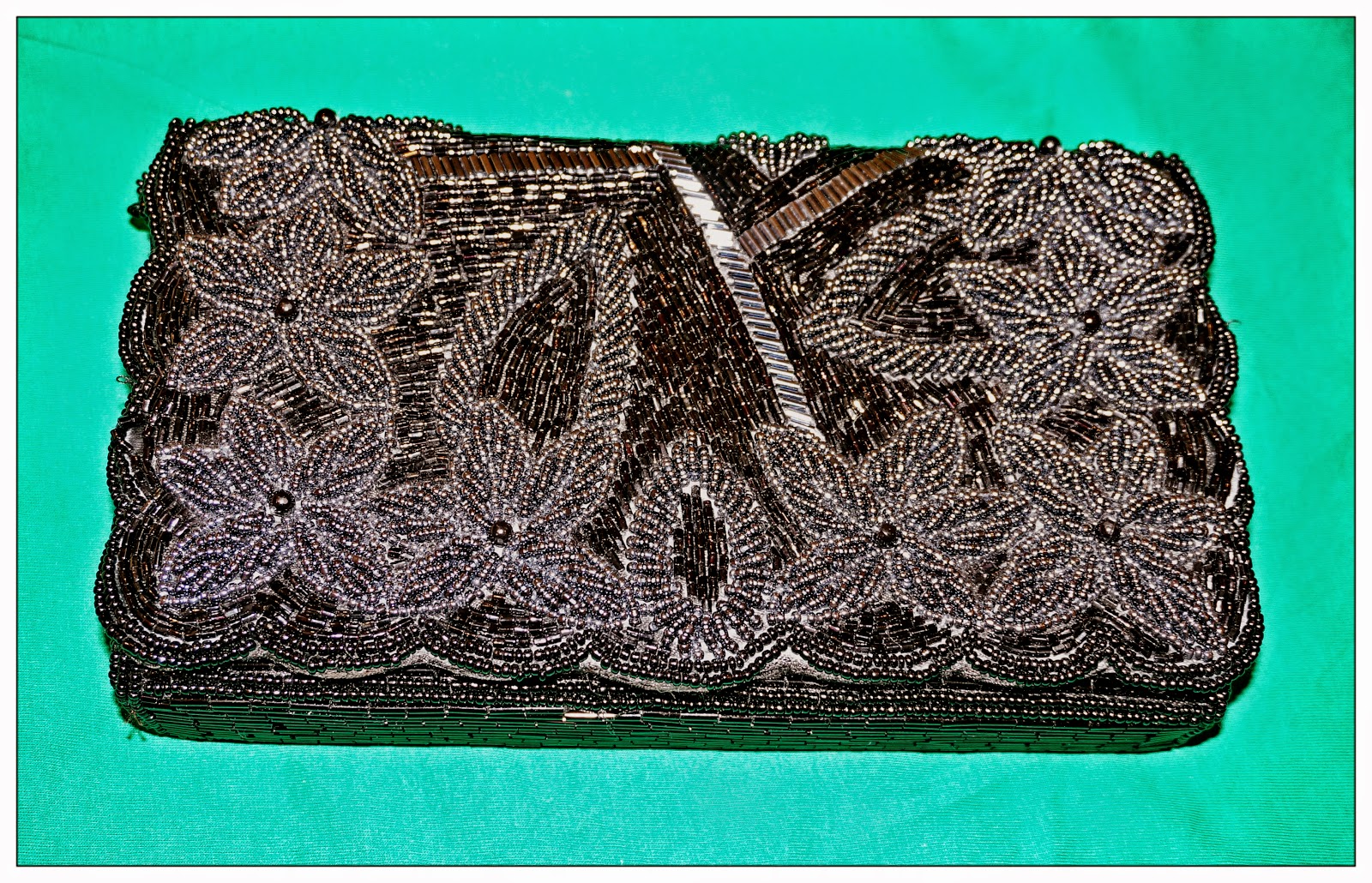 El clutch negro de cuentas lo adquirí en una tienda de Tailandia.