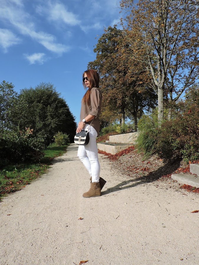 La blusa, las gafas de sol y el bolso son de ROSEGAL la blusa me encanto, desde que la vi, tiene un tejido fluido y el bajo posterior es asimétrico, además gracias a los tres botones que tiene en la espalda hace que se adapte bien a tu cuerpo, es lo que mas me gusto de ella, las gafas de sol son negras con detalles dorados y los cristales tienen un tono morado oscuro precioso y el bolso, como podéis ver es ideal.