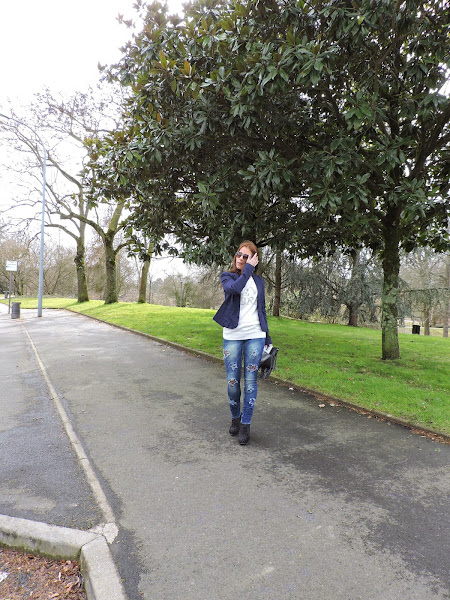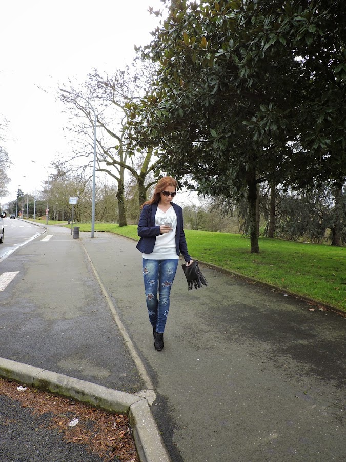 El protagonista en el look de hoy es sin dudas los jeans los compre el lunes en florence en cuantos los vi me encantaron, la chaqueta y las gafa de sol son de h&m, los zapatos de chaussea y por ultimo el bolso y el jersey de new yorker.