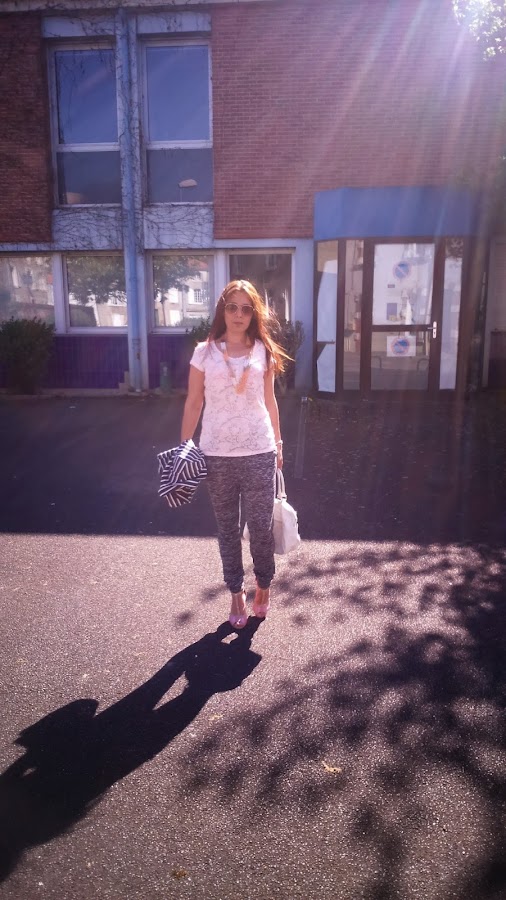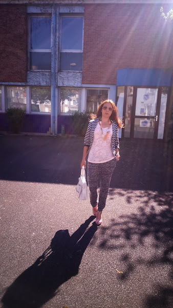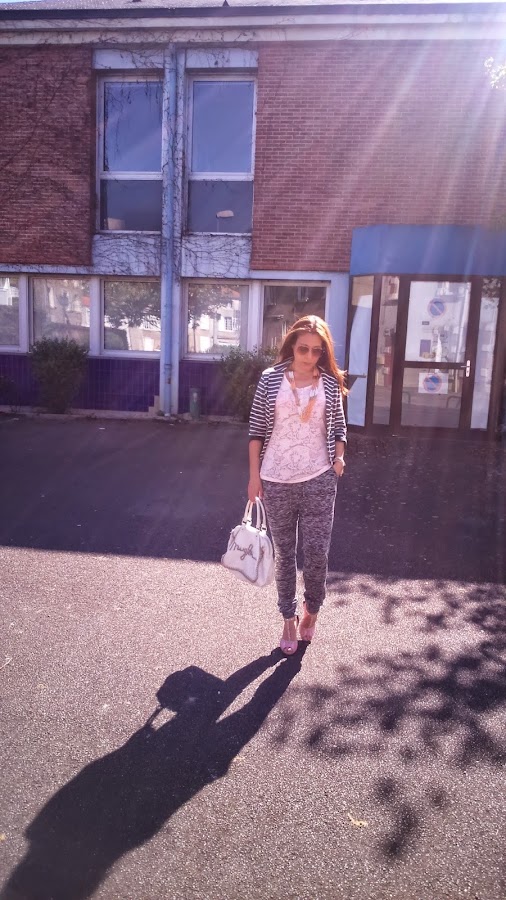 Los pantalones y el collar son de New yorker, el blazer es de Jennyfer, las gafas y el t shiert de H&m y el bolso es de Thierry mugler.
