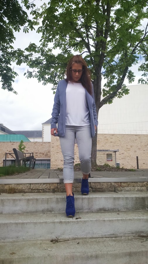 Los pantalones y el blazer que me encanta! son de H&m. la blusa es de Florence, Los botines los compre el ano pasado en España pero no se como se llama la tienda y las gafas Gucci.
