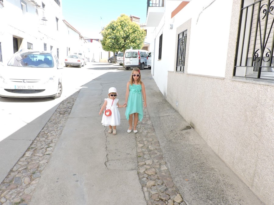En cuanto a mis bebes el look de la peque es de h&m a excepción de los zapatos que son de zara, la Mayor tiene un vestido Baboo y los zapatos chaussea.