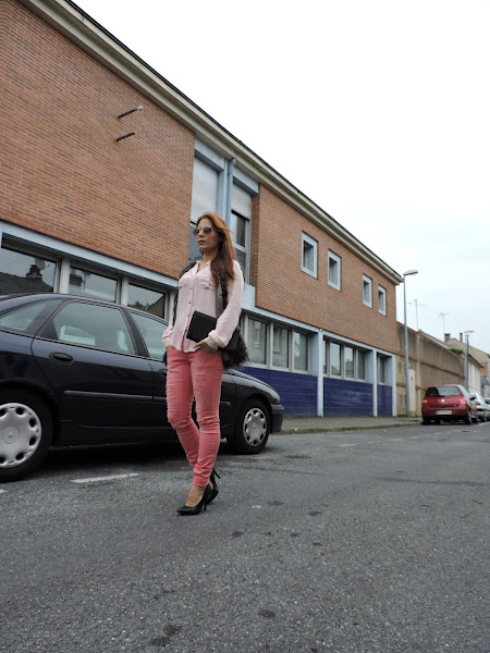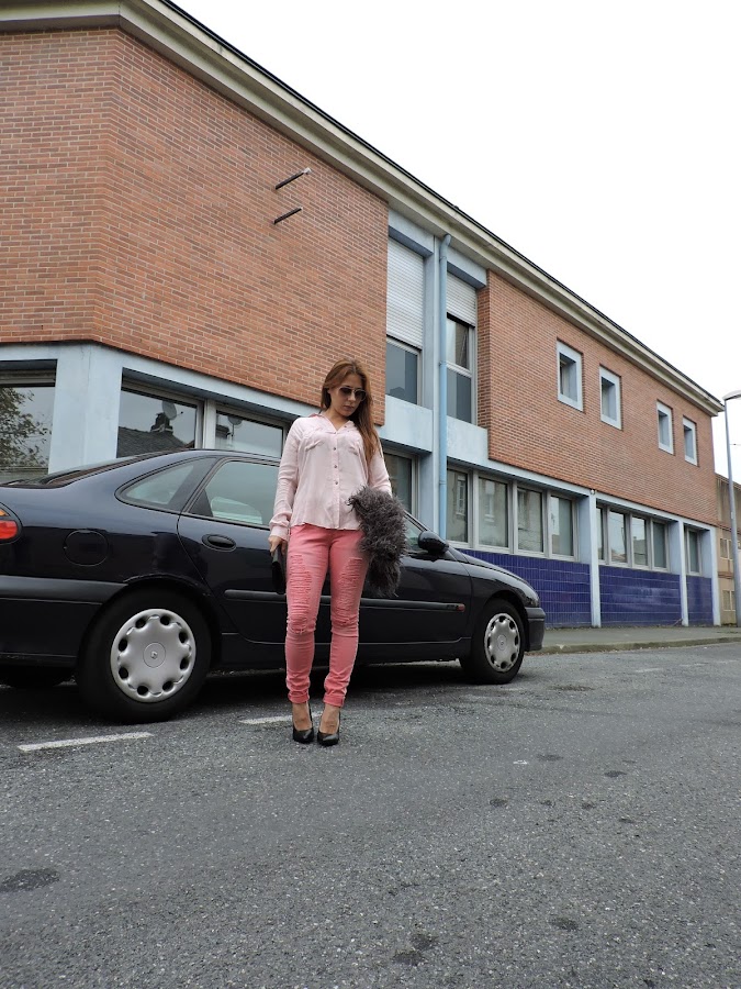 Como protagonista del look de hoy, el rosa que como sabéis me encanta!!! además aporta luz en estos días tan grises. como complemento, el chaleco, zapatos y bolso negro y como accesorios simplemente las gafas de sol.