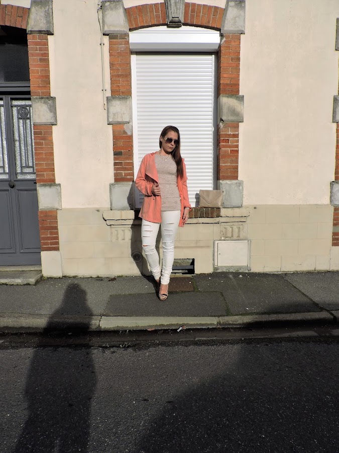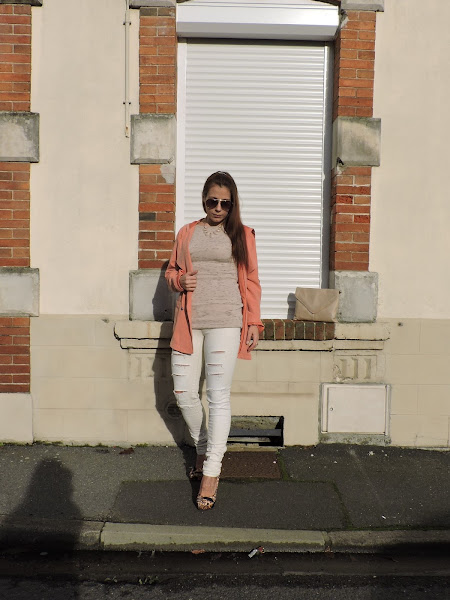 En este caso yo he optado por combinarla con tonos claros, bolso y pantalón New yorker, jersey Babou, zapatos Shes y gafas de sol Mango.