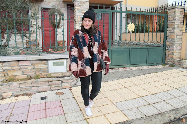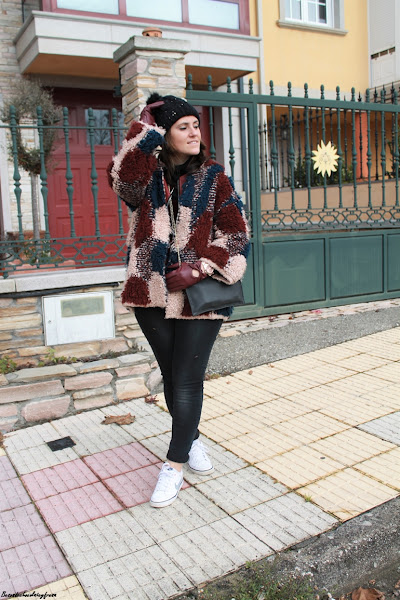 Así es el look que os enseño hoy. Compuesto por varias capas y muchos complementos. Abrigo de peluche patchwork que me pudisteis ver un montón por aquí desde que me hice con el el año pasado, el perfecto aliado para días así.