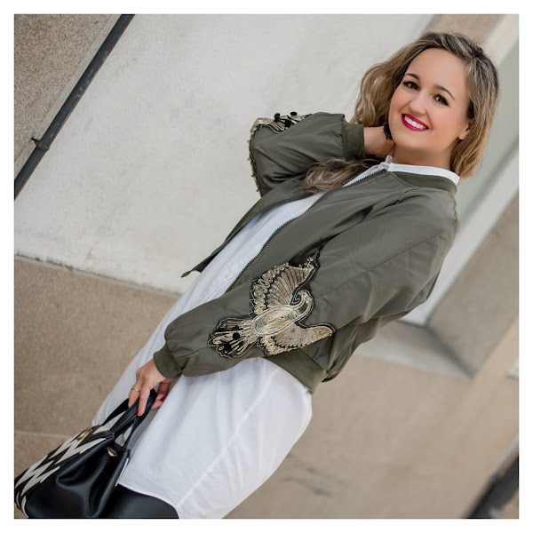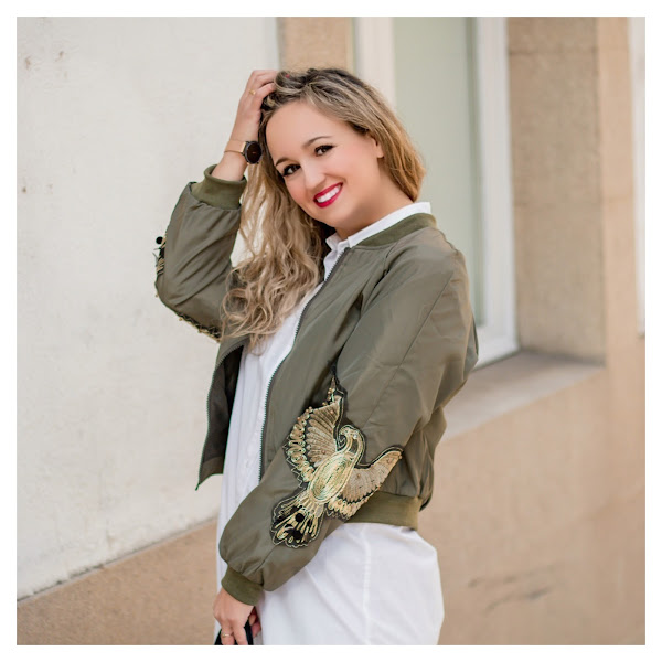 Para hoy os traigo un look protagonizado por una cazadora de Zaful básica pero con unos detalles preciosos que la hacen perfecta para subir cualquier look de día. Se trata de una bomber militar con unas águilas bordadas en dorado y negro en las mangas.
