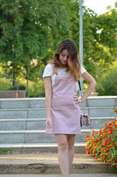 ¡Hola bloggers! Junto con el negro(¡cómo no!), uno de los colores que más vengo utilizando esta temporada es el rosa muy suave o rosa pastel y es que no me gusta cómo me sienta el color rosa fucsia, la verdad. Para añadir una prenda más de este color a mi armario dedicí escoger este pichi(¿vosotras cómo le llamáis?) de la web Romwe. No dudé en combinarlo con uno de mis bolsos más especiales y preferidos que tengo de Parfois. ¿Qué os parece?