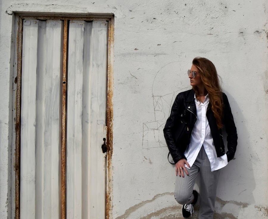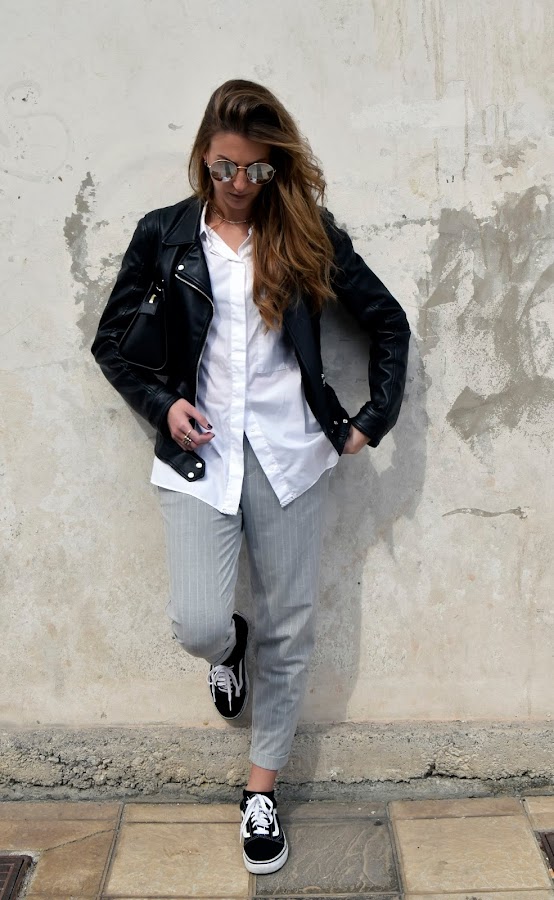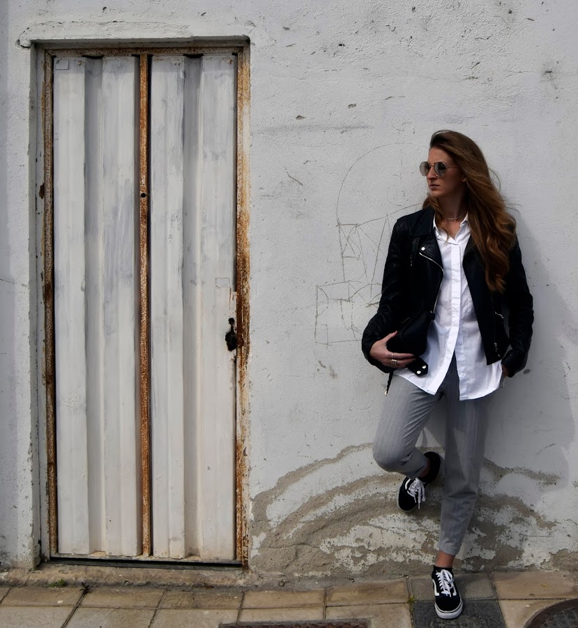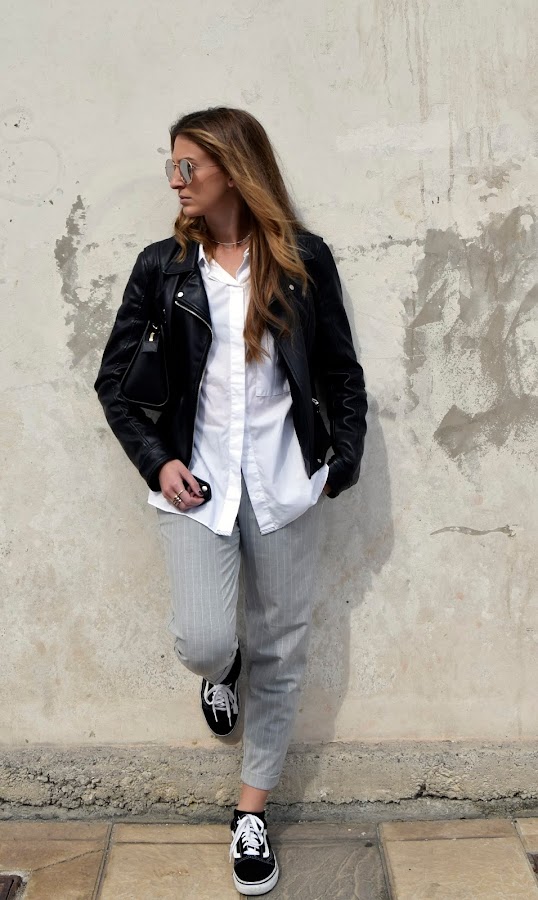 Pantalón gris, camisa blanca y perfecto negra un duelo de básicos que a mi personalmente me encanta. Acompañado de mis vans y mi Michael Kors, un look perfecto tanto para ir a trabajar como para una cena.