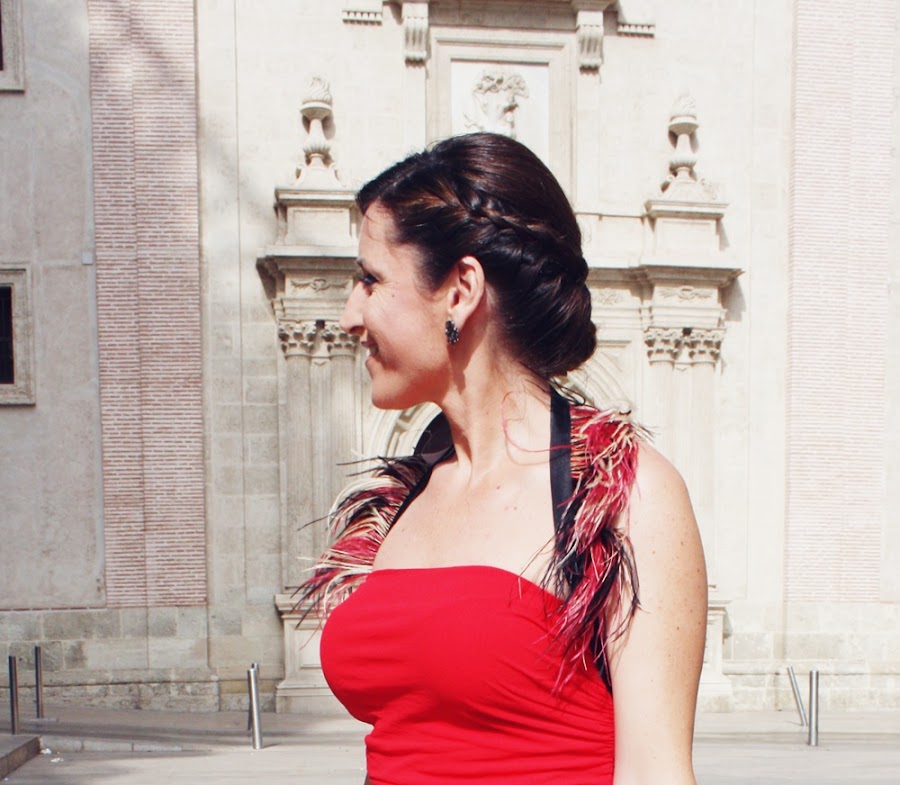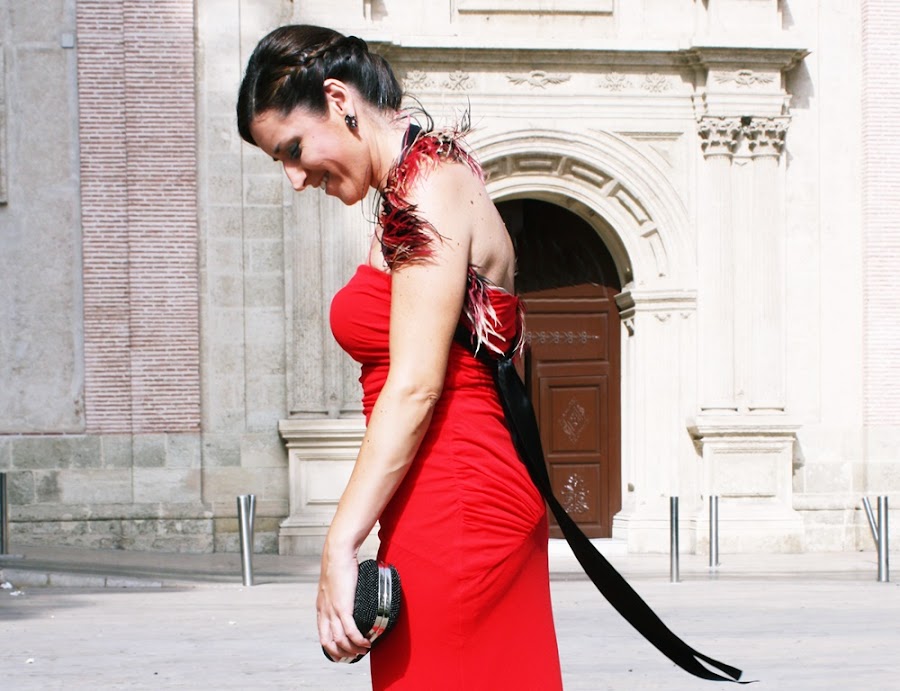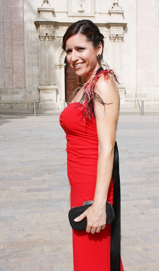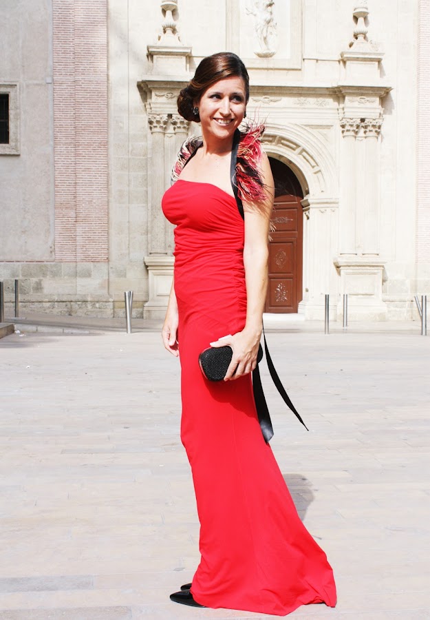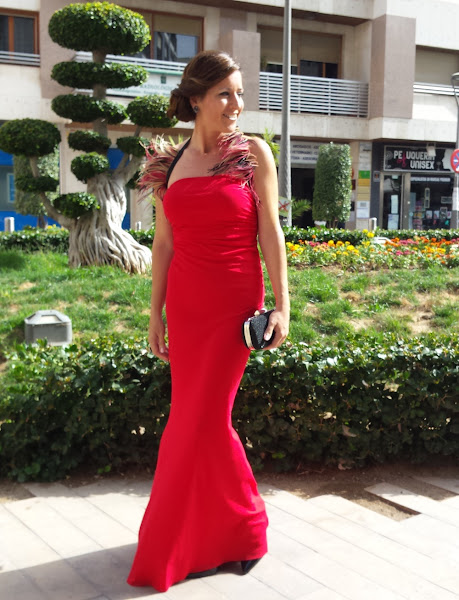 Esta vez lo acompañe de complementos más sobrios en color negro y un recogido que permitiera el movimiento de las plumas.