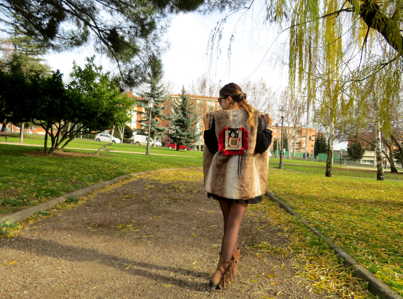 Este es mi look, una vez más recurro a las capas y a las prendas de piel que siempre estilizan y me encantan o adorables que son. Además, adoro la combinación de prendas de piel y botas con flecos, yo y los flecos como no.