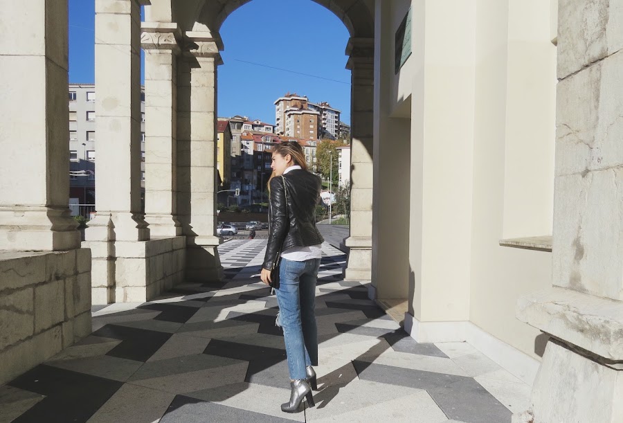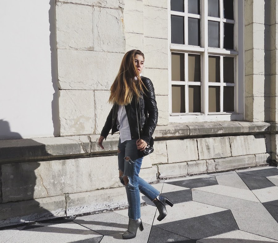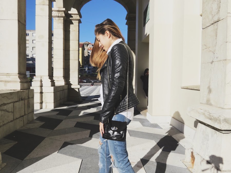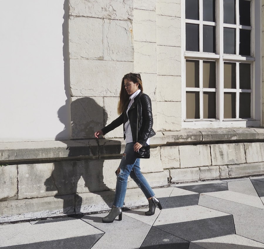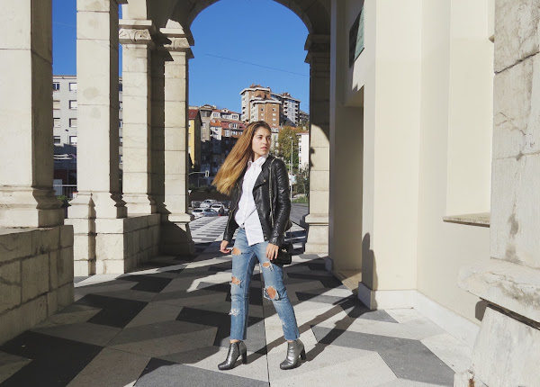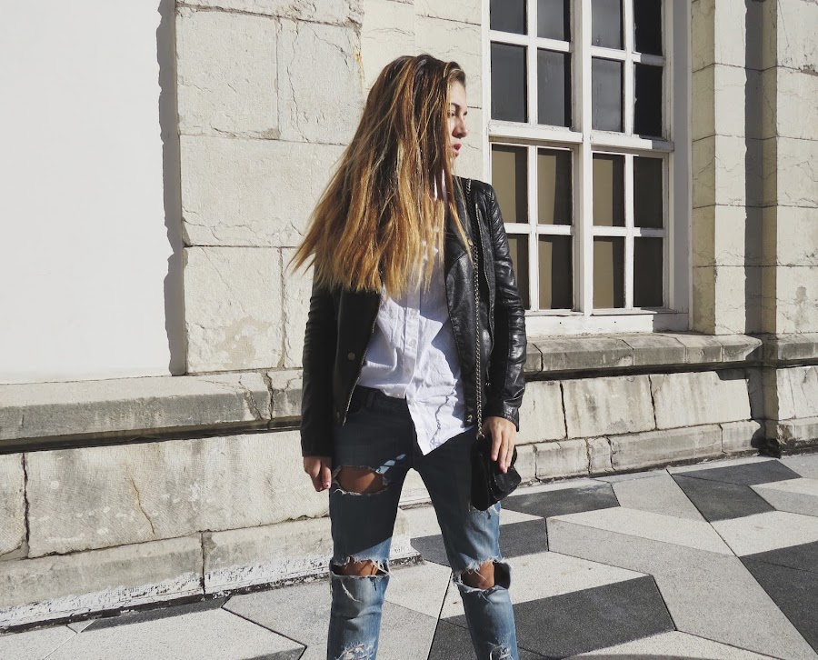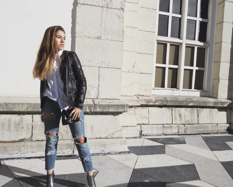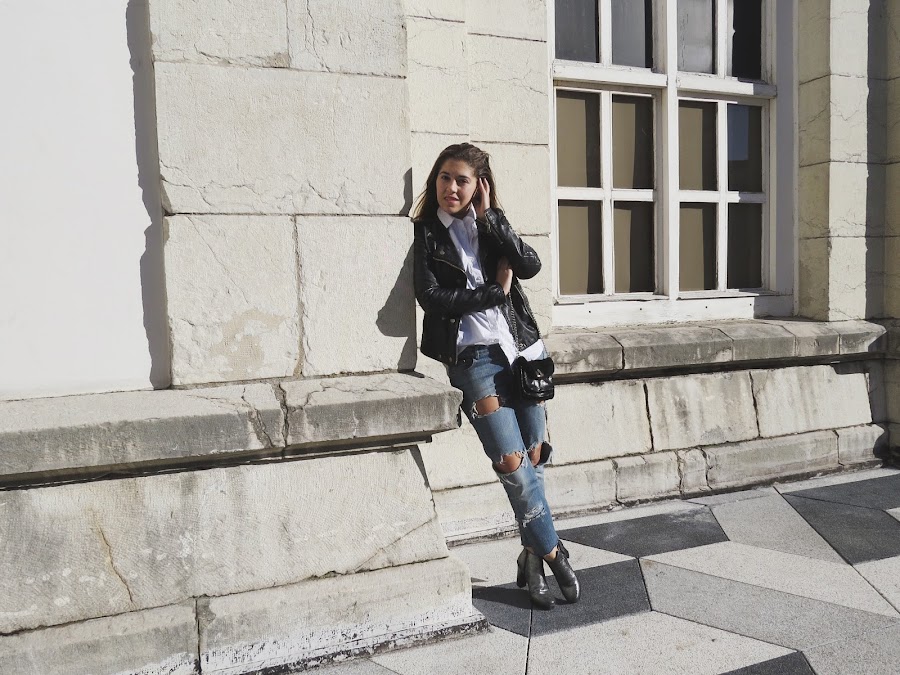 Jeans boyfriends, camisa blanca y chupa de cuero, el combo perfecto.