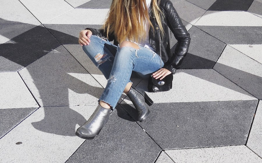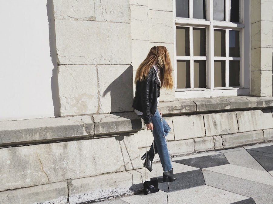Boyfriends jeans, white shirt and leather sucks, the perfect combo.