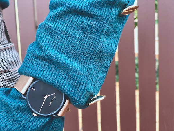 Y como complementos, llevo mi reloj de PAUL HEWITT, con esfera negra y correa oro rosa.