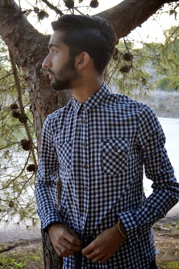 Hoy os muestro un look bastante clásico, una camisa de cuadros blanca y azul marino. Es un auténtico fondo de armario, siempre está a favor de todos y queda muy bien. Los pantalones son tejanos pitillo.