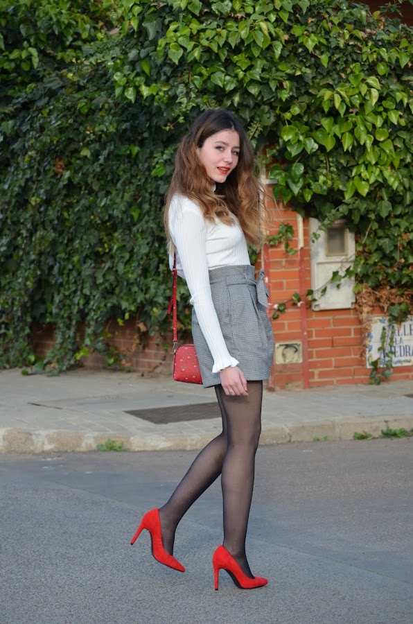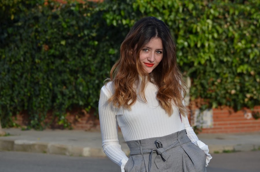 Hoy os muestro este look que a mí personalmente me encanta. Al principio iba a ser un look en blanco y negro pero finalmente decidí darle un toque de color rojo con los tacones y mi nuevo bolso que me compré en Madrid. Combiné estos shorts de Stradivarius con estampado vichy y mi nuevo top de Zaful. Me gustan mucho las formas que hacen sus mangas y también en la zona del cuello.