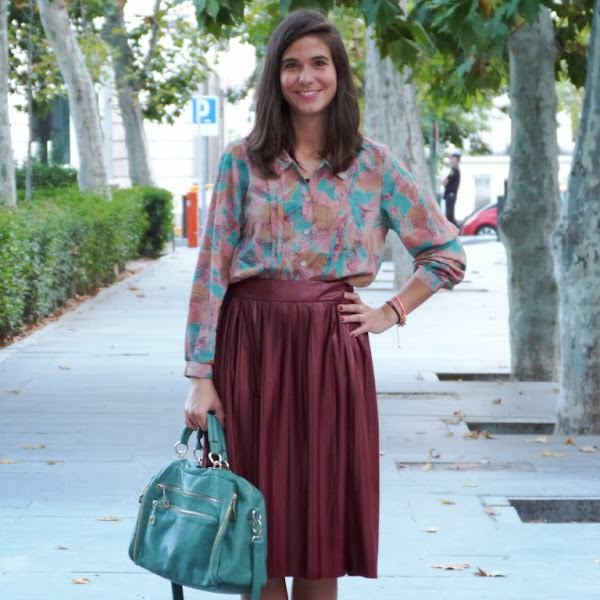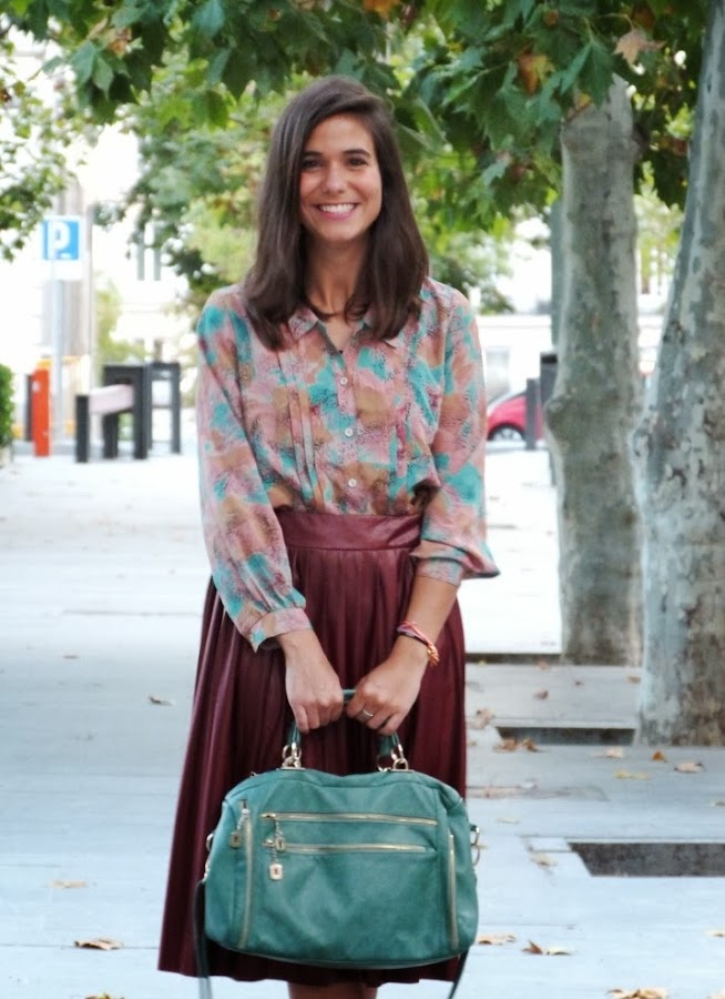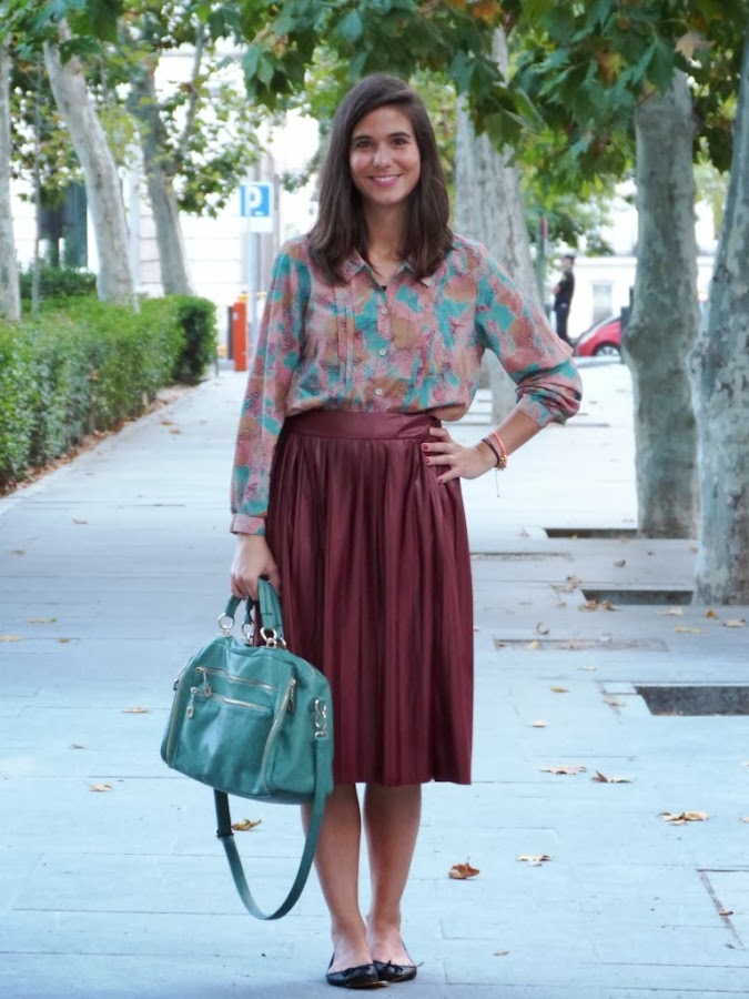 Parece que las faldas de corte midi vuelven a estar de moda este otoño. La verdad es que para esta época vienen muy bien porque podemos llevar falda sin medias y no sufrir el fresquito de las mañanas y las noches. Aunque tienen fama de no sentar muy bien, por aquello de que acortan las piernas, a mi me gustan mucho por el rollo vintage que tienen. Por eso, nada mejor que combinar mi falda midi de Zara con esta blusa de Susi Sweet Dress, una firma vintage que me encanta!!! Para mantener el toque ochentero la combiné con unas bailarinas (aunque sí es cierto que estilizan más con tacones). Y además, con un bolso verde agua ideal de Bimba & Lola.